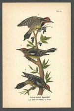 YELLOW-BELLIED SAPSUCKER Vintage 1890 Chromolithograph, Color Bird, Antique, 077