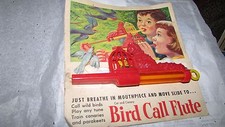 VINTAGE 1954 TOY WHISTLE BIRD CALL FLUTE CAT & BIRD MINT ON CARD