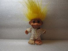 Vtg Russ TROLL Doll w/ yellow hair & Brown Eyes Vinyl Toy 5" PJ with feet outfit