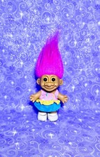 Vtg Russ TROLL Doll w/ purple hair & Brown Eyes Vinyl Toy 5" dress outfit