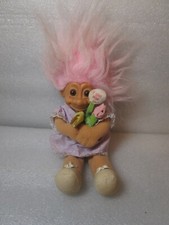 Rare Vintage 90s Troll Doll - Russ Plush Pink Hair “I Love Mom" with flowers
