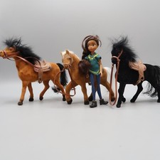 Lot of 3 Vintage Flocked Horses Ponies & Dreamworks Spirit Girl Toy
