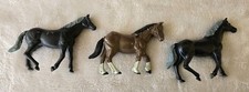 Lot of 3 Hard Plastic Vintage Toy Horses Figures Figurines Black Brown Small Kid
