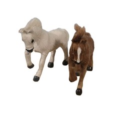 Vintage Handmade Fur Covered White & Brown Horse Toy Play Figurine 5.5" Lot Of 2