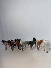 Vintage Lot of 7 Miniature Toy Flocked Horses Mini Fuzzy Ponies Of Various Color