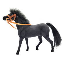 Vintage Flocked Plastic Horse Toy Figurine Pony Foal Black/Dark Gray 4.75”