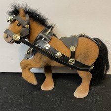 Vintage STEHA Lieha Flocked Harness Horse Figurine Toy Brown Black 6.5”