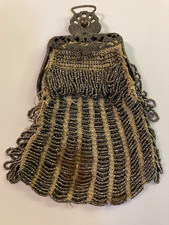 Antique Silver Tone Frame Victorian Metallic Beaded Clutch Purse Evening