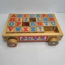 RARE Looney Tunes Wooden Pull Toy Cart Vintage Childrens Blocks ABCs Acme Read