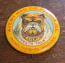 Antique Avery MFG Co Peoria IL Implements Advertising Celluloid Bulldog Pinback