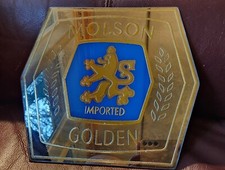 Vintage Molson Golden Imported Beer Advertising Bar Sign Mirror Beeco Hang Stand