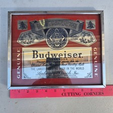 Budweiser Lager Beer Genuine Bar Mirror Sign Framed Anheuser-Busch Advertising