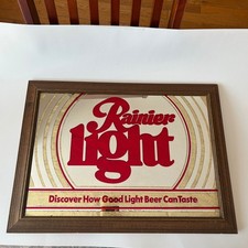 Vtg Rainier Light Beer Mirror Seattle Advertising Sign Framed Wall Decor