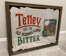 Tetley Bitter Ale Beer w/ Fox Hunt Wood Framed Pub/Bar Advertising Mirror Sign