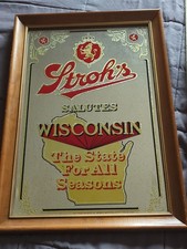 Stroh's WISCONSIN Framed Beer Mirror Advertising Sign Salutes Wisconsin 15"X 22"