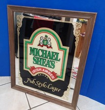 Vintage Michael Shea’s Irish Amber Pub Mirror Sign – Beer Advertising, 25”x21”