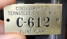 VINTAGE TERNSTEDT GENERAL MOTORS FLINT MICHIGAN PLANT BRASS ADVERTISING TAG SIGN