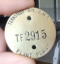 VINTAGE TERNSTEDT G.M.C. CHEVROLET FLINT MI. PLANT BRASS ADVERTISING TAG SIGN