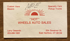 Vintage 1970s Hot Wheels Auto Sales Business Card Car East Hartford CT P1H