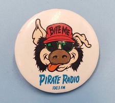 PIRATE RADIO 100.3 FM L.A. 1.5" Pin Button Circa 1989-'92 Rock Vintage Original