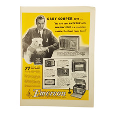 1940 Emerson Radios Vintage Print Ad Gary Cooper 1941 Miracle Tone A Revelation