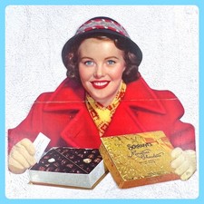 1950s Schrafft's Chocolate Candy Vintage Advertising Sign 28" Cardboard Woman