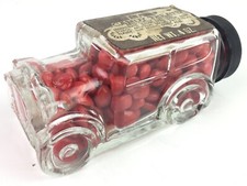 Vintage Glass Candy Container Antique Car, Original Label & Candy