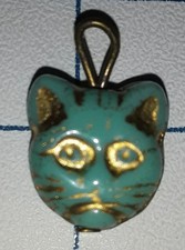 1940s Czech Glass Cat Face CRACKER JACK TOY Green Charm #1 Vintage Antique Prize