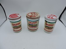 Lot of 3 Vintage Antique Skippy Peanut Butter Glass Jars w/Lid Super Chunk Label