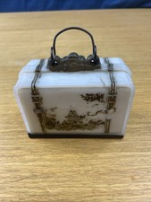 Antique Suitcase Figural Milk Glass Candy Container