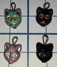 Lot of 4 Diff 1940s Czech Glass Cat Face CRACKER JACK TOY Charm Vintage Antique