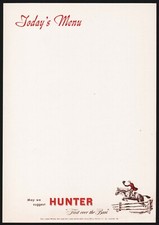 Vintage menu HUNTER Fine Blended Whiskey Hunter-Wilson Distillery Louisville KY