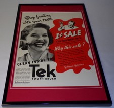 1937 Johnson & Johnson Toothbrush Framed ORIGINAL Vintage Advertising Poster