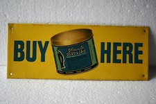 Vintage DEAN'S PEACOCKS RESERVOIR ENDS Advertising Embossed Metal Sign 13.25"