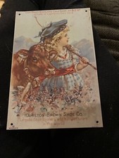 REPRODUCTION METAL SIGN ADVERTISING GIRL & COW HAMILTON BROWN SHOE CO