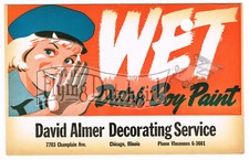 Vintage Dutch Boy 'Wet Paint' Cardboard Sign Chicago Illinois Advertising 1950's