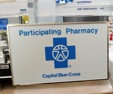 Vintage Pharmacy Drug Store Capital Blue Cross Advertising Stand-Up Counter Sign