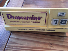 RARE VINTAGE DRAMAMINE DRUG STORE PHARMACY ADVERTISING SIGN WITH CHANGEABLE DATE
