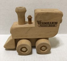Vintage Advertising Train Bank - VERMILLION FACTORY STORES - Oregon Wooden Toy