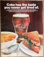 Coca Cola Soda Ad Vintage 1960s Mid Century Kitchen Wall Art Diner Decor 1966