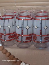 Vintage Coca-Cola Glasses Set of 6 Mid Century Stained Glass Style Coke Tumblers