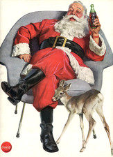 1956 Coca Cola Santa Claus in Mid Century Chair, Fawn deer Print Ad