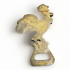 Vintage Solid Brass Rooster Bottle Opener | Mid-Century Barware | Figural Farm