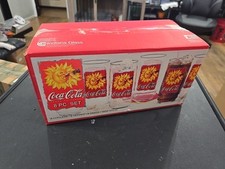 Vintage 1995 Indiana Glass Coca Cola 8 16 oz Glasses Sun Sealed Box N.O.S