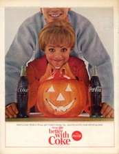 1964 Coca Cola Halloween Ad Pumpkin Jack O Lantern Magazine Ad Coke Original
