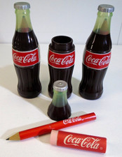 Vtg Mini Coca-Cola Bottle Toy Lot 3.5" w/ Eraser & Pencil 3pc school auto golf