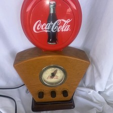 Coca-Cola Bottle Radio Red Sign Collectible Soda Advertising Brown Wood Case