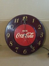 VTG Neon Coca Cola Clock, 1940s Clock sign Diner Kitchen Retro Advertising
