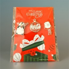 Coca-Cola Christmas Pin Set 2025 Penguin Ornament Bottle Original Soda