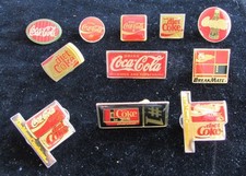 COCA COLA BRAND: 11-LAPEL/HAT PINS LOT OF COCACOLA & DIET COKE PRODUCTS
